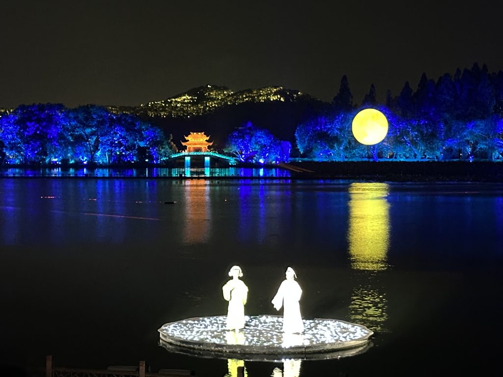 《印象西湖.最忆是杭州》是世界唯一的都市山水西湖为背景,波澜不惊的西湖水为舞台,杭州历史文化为主题的的大型实景表演,美爆了西湖之夜,也是G20保持至今的文旅项目。10月15日晚餐后,正是“最爱湖东行不足,绿杨阴里白沙堤。”,在朋友陪同下游览西湖夜景的美艳,再饱享了这场视觉和听觉的艺术盛宴。